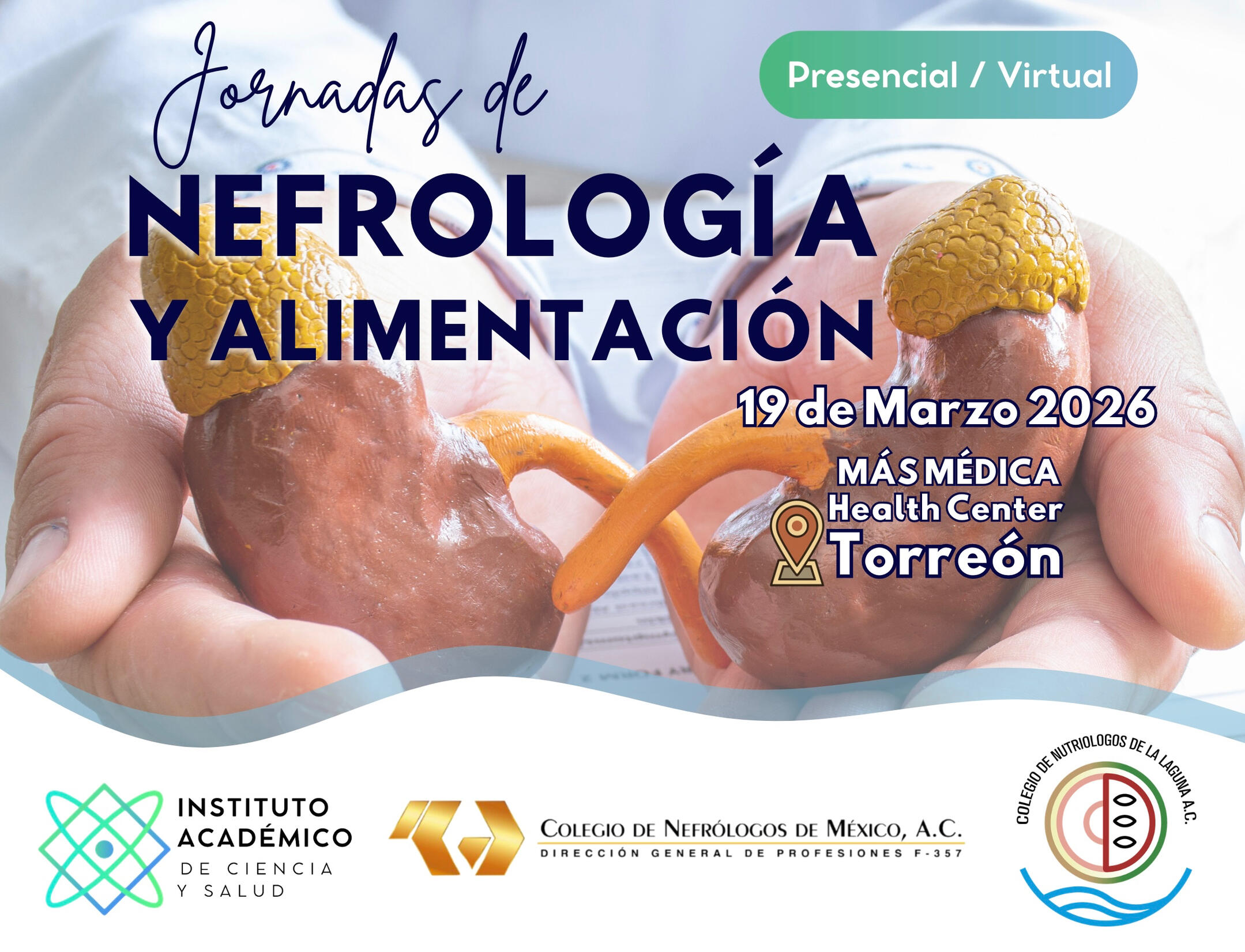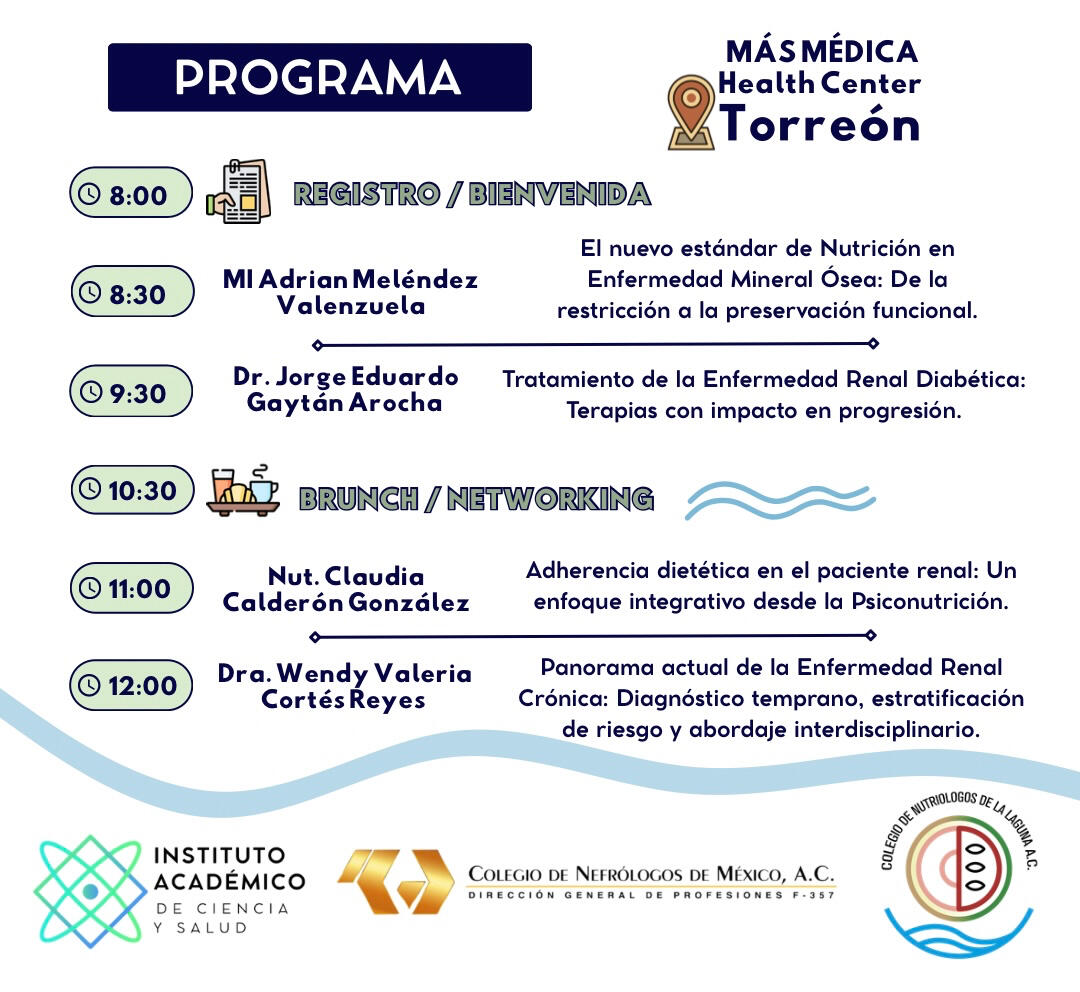El Instituto Académico de Ciencia y Salud, en conjunto con el Colegio de Nefrólogos de México, A.C. y el Colegio de Nutriólogos de la Laguna A.C., realizan el encuentro clínico de actualización interdisciplinaria con aval oficial.
